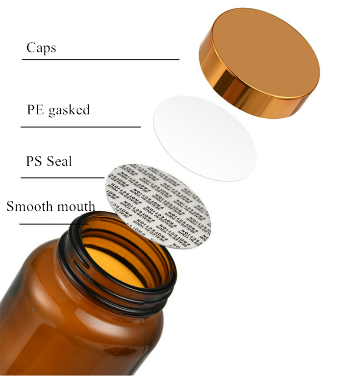 Gasket in Cap: PE liner, filmed PE liner, pressure sensitive liner, aluminum foil liner